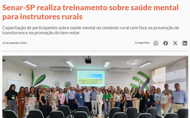 Palestra para os instrutores sobre saúde mental nos trabalhadores ruais em 2024.